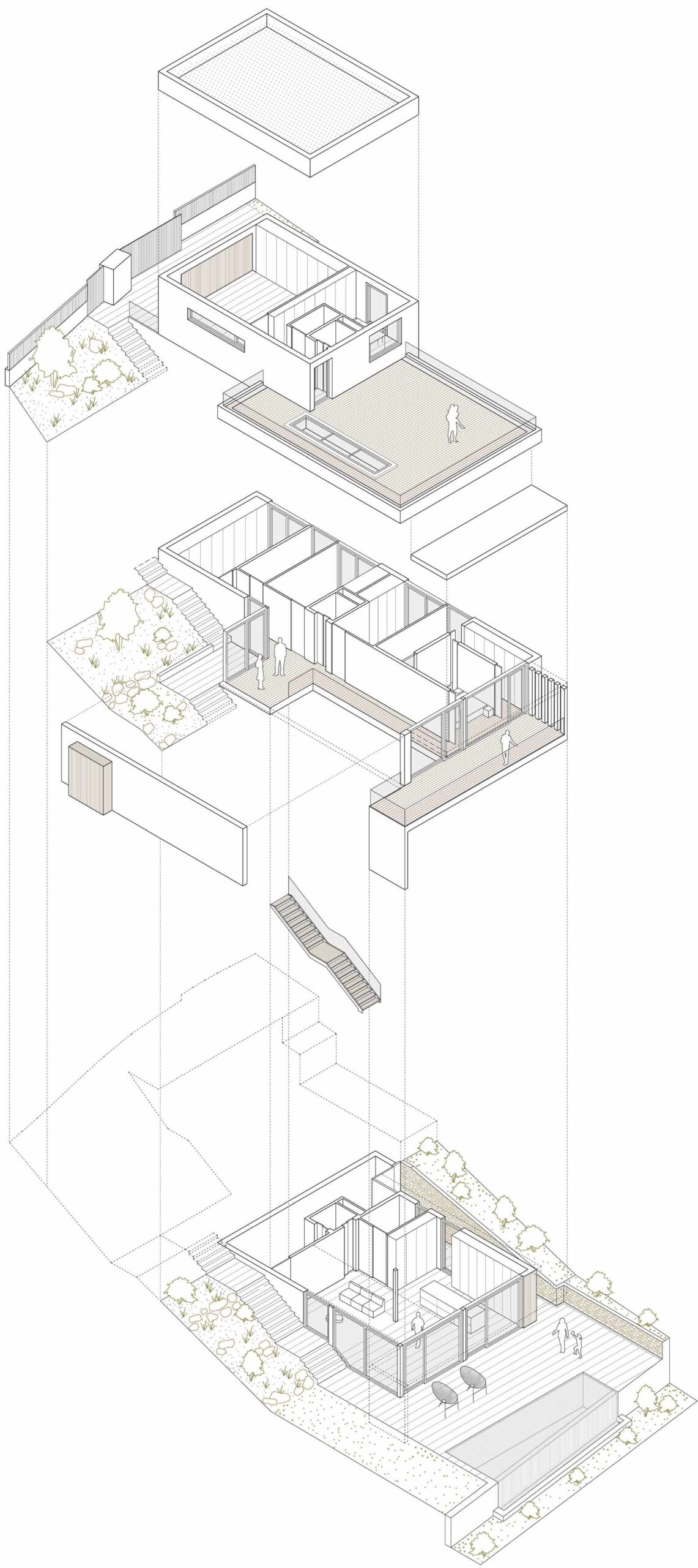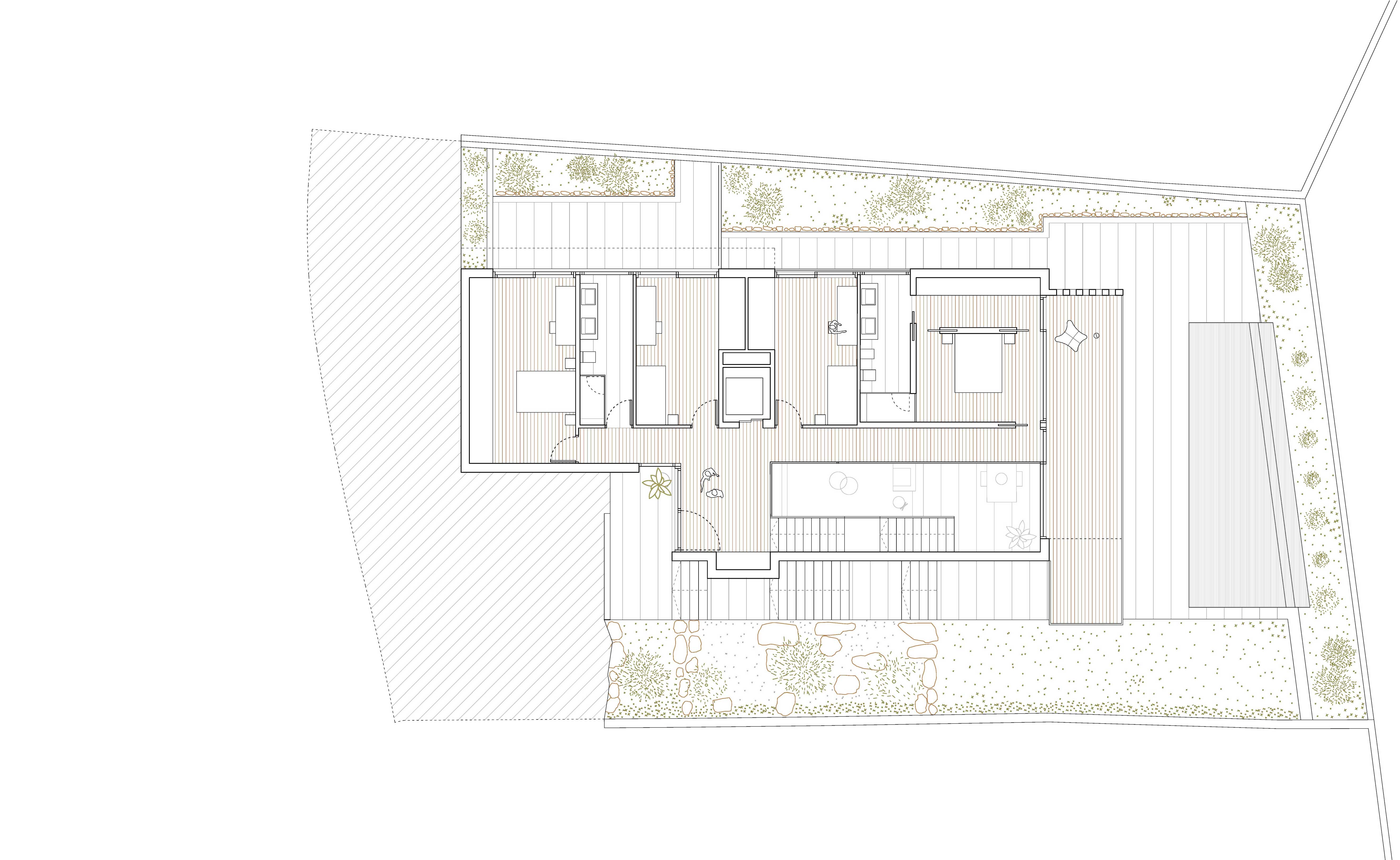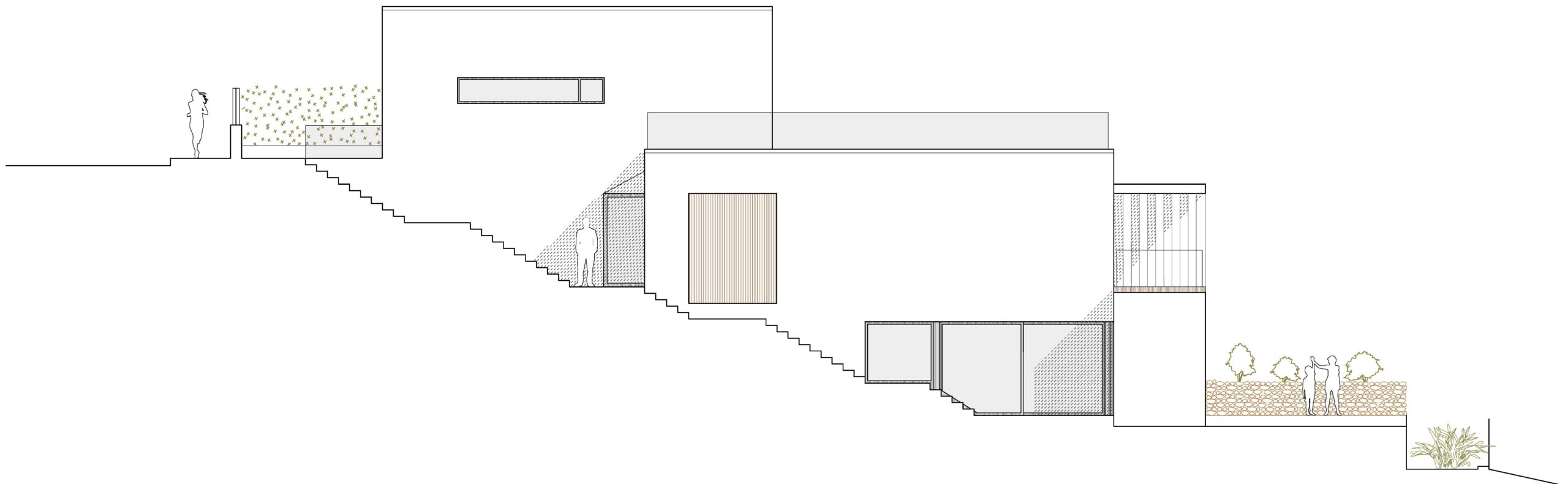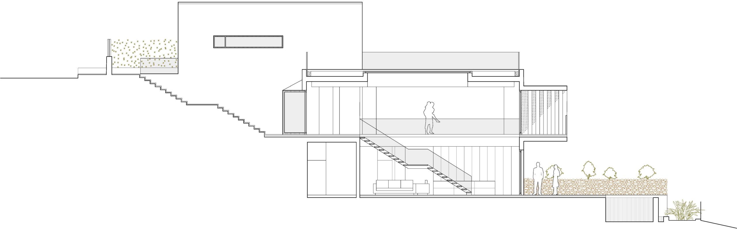 Energy efficiency has been a premise in the conception of this house. The project proposes, in terms of light control, both direct and indirect, openings that are distributed where thematically best can enhance the characteristics and visual and thermal needs of the property. The structure of the house itself provides passive solar architecture solutions, through porches of different dimensions. The rainwater from the roofs is collected in tanks and reused to irrigate the garden area. At the same time, the house integrates an air conditioning system using aerothermal technology, which together with the thermal insulation proposed in the roofs, the construction system itself and the exhaustive study of the composition of the different skins of the building, have made this house have obtained an energy certification A.